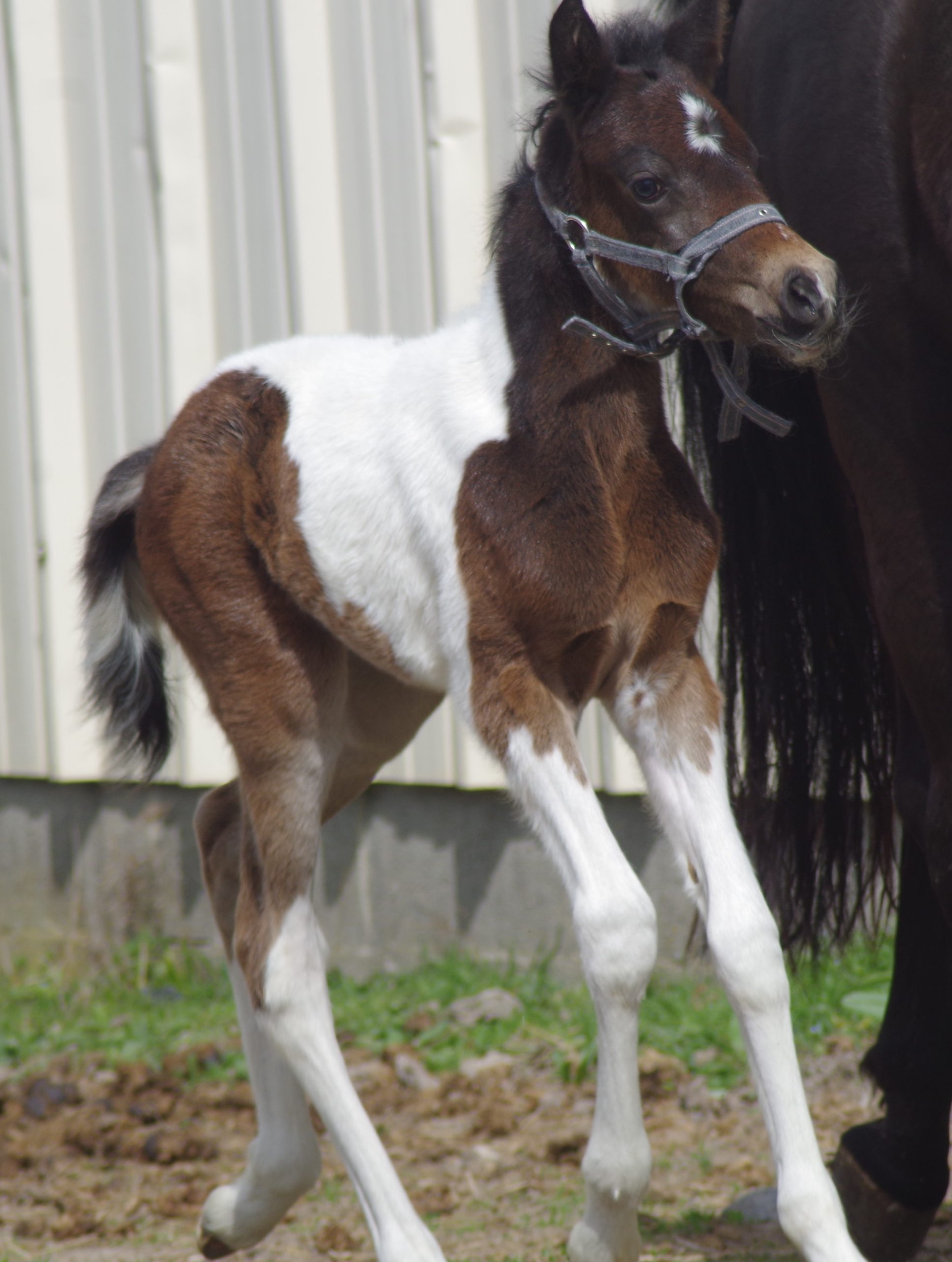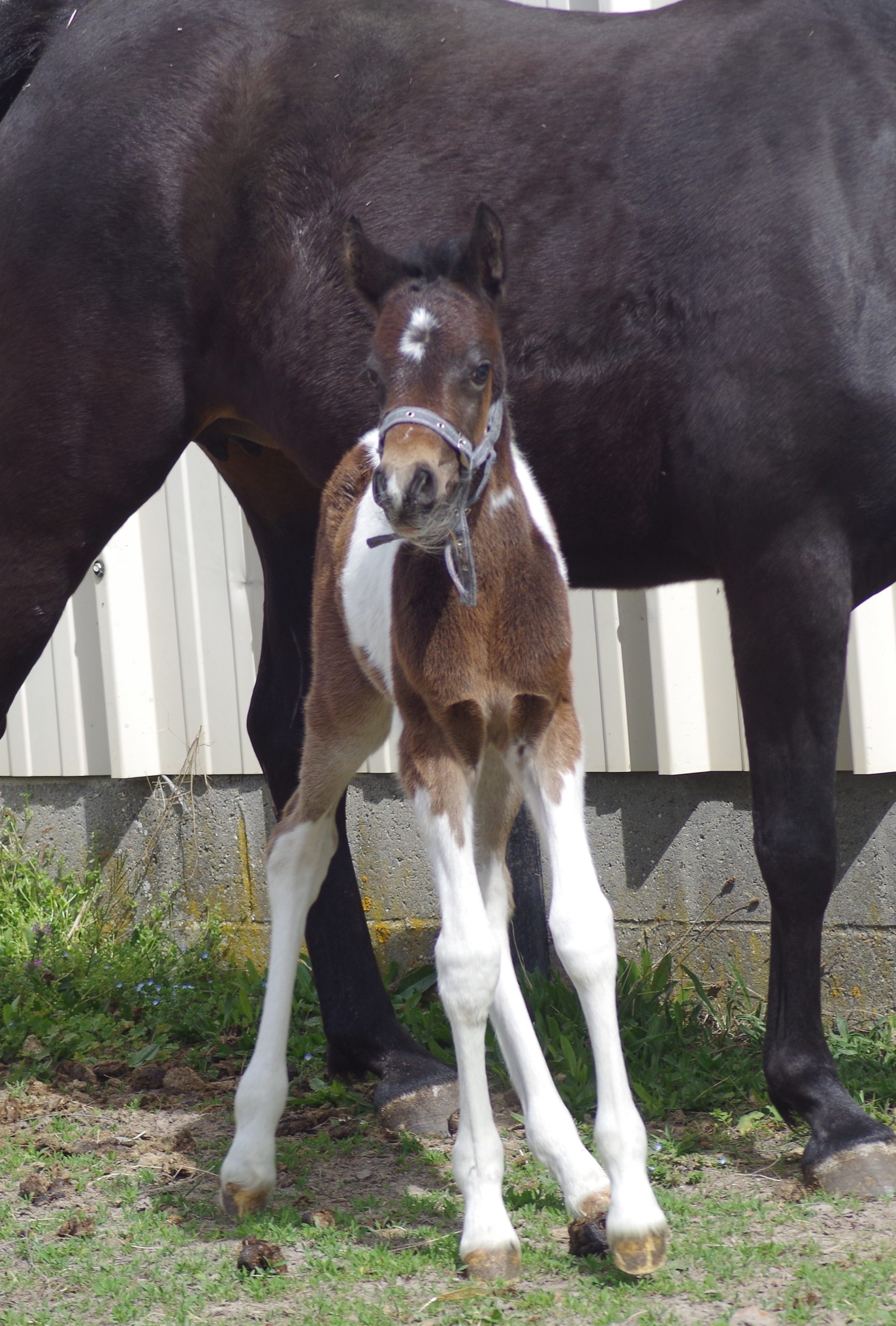 Sa souche NF est riche de bons gagnants et sa robe pie ne gâche rien. Assurément une pouliche d’avenir pour le sport et/ou l’élevage.